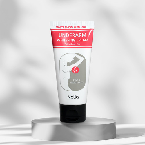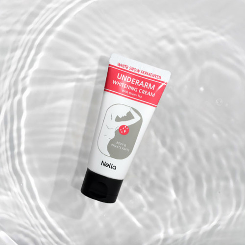 NELLA – White Snow Fermented Underarm Whitening Cream with Green Tea lightens and brightens the skin under the arms, including the dark bikini area, dark inner legs, and dark knees. It is a dark spot corrector. It contains green tea extract, known for its antioxidant and skin-soothing effects. The underarm cream for whitening exfoliates the skin, removing dead cells and reducing melanin synthesis, which gives skin its color.